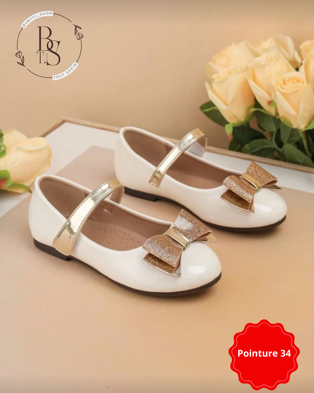 Faites briller les pas de votre enfant avec ces ballerines blanches élégantes décorées d’un nœud doré scintillant 🎀.