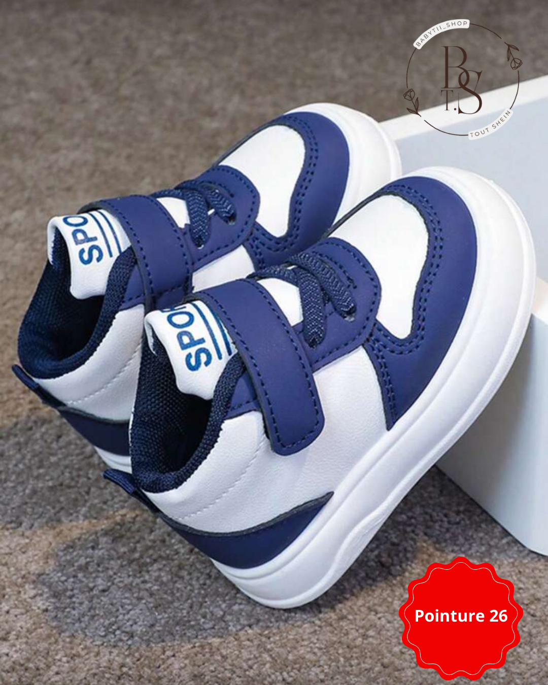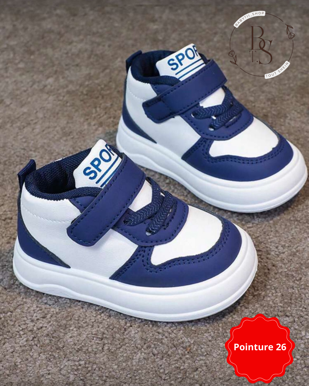 Faciles à enfiler grâce à leur fermeture à scratch, elles sont idéales pour les enfants actifs. Leur design sportif en blanc et bleu marine s’adapte aussi bien aux tenues décontractées qu’aux looks urbains. Un indispensable du vestiaire enfant, alliant praticité et style.