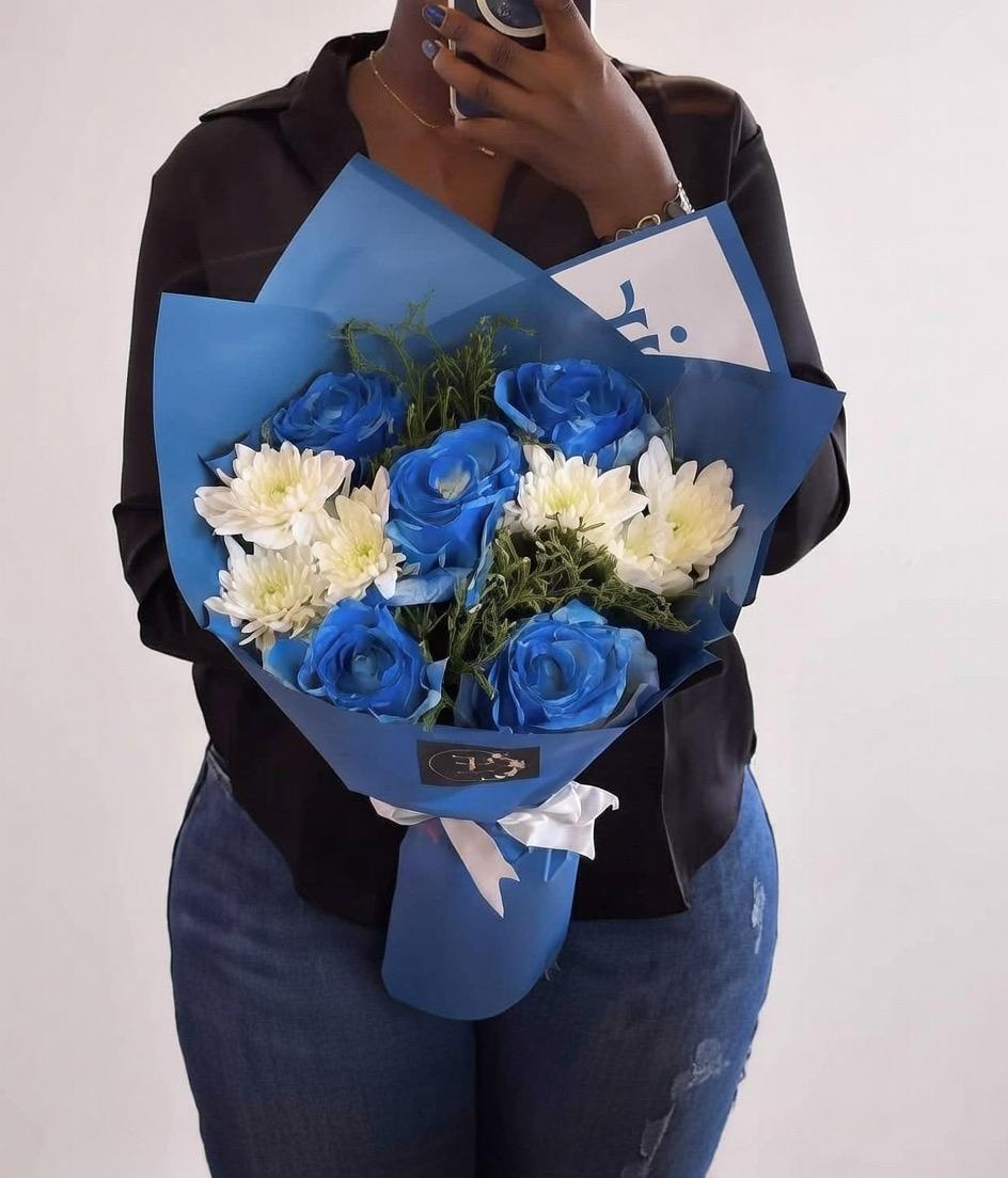 Le Bouquet de Fleurs Bleues & Blanches est un choix parfait pour exprimer des sentiments sincères avec élégance.
