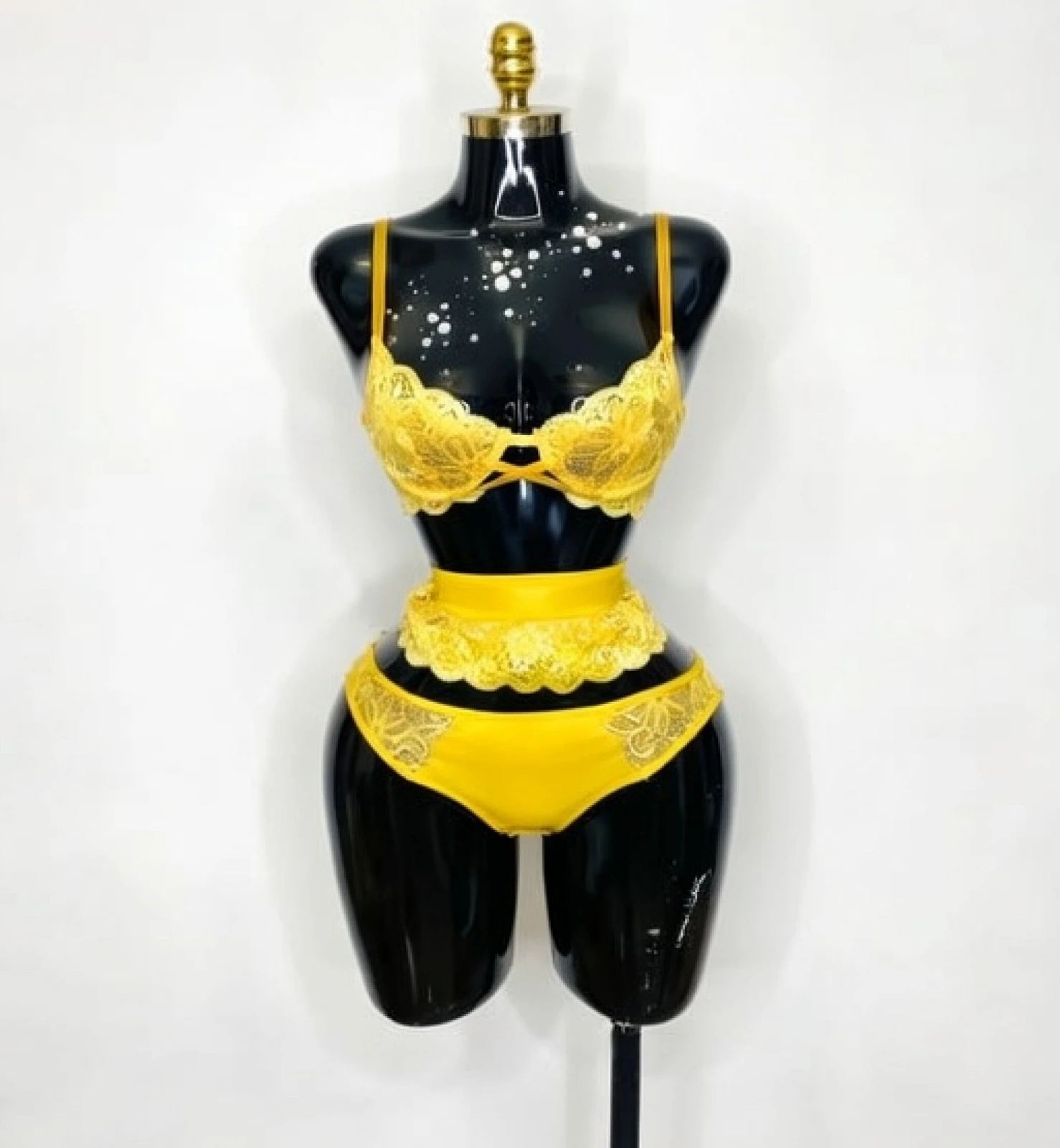 Le soutien-gorge structuré épouse parfaitement les formes, tandis que la dentelle ajoute une finition raffinée et féminine. La taille est sublimée par une ceinture en dentelle qui affine la silhouette et apporte une touche chic supplémentaire.