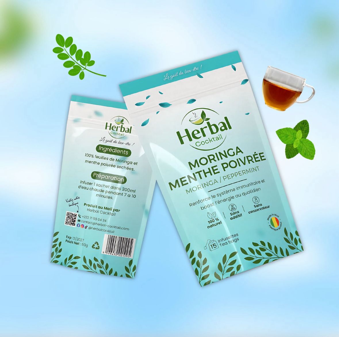 Herbal Cocktail – Moringa & Menthe Poivrée – Infusion naturelle 15 infusettes