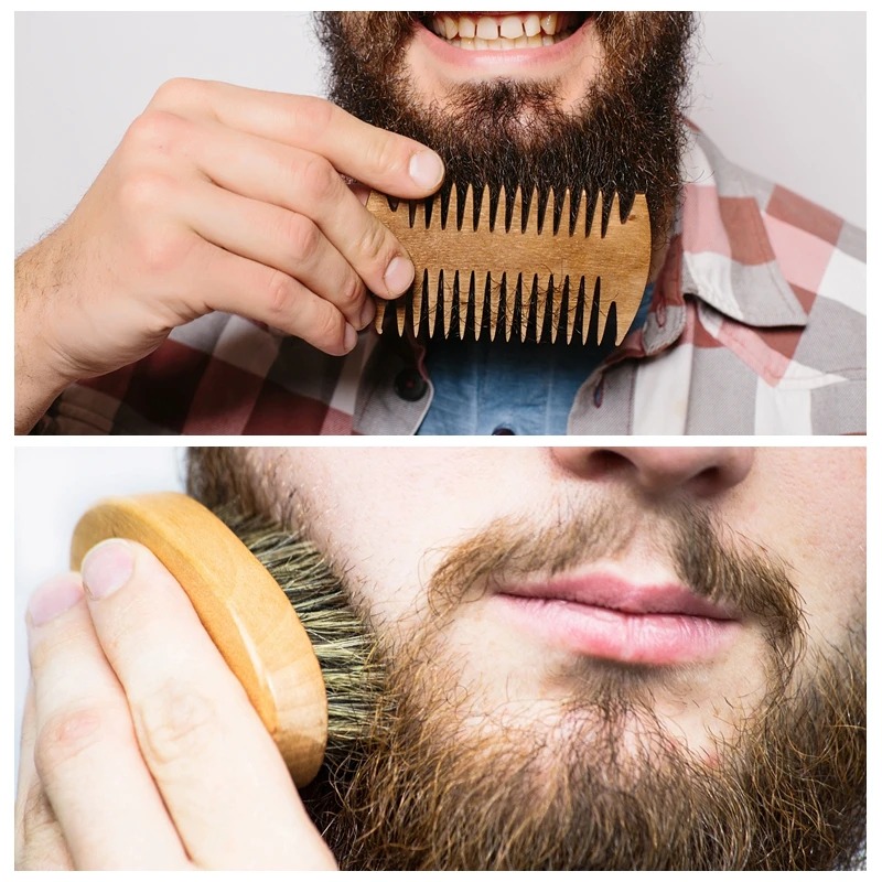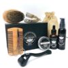Ce kit barbe complet 9 en 1 est l’allié parfait de l’homme moderne. Il contient tout le nécessaire pour une barbe saine, douce et stylée : huile de croissance, baume nourrissant, shampoing nettoyant, brosse en poils de sanglier, peigne en bois, ciseaux de précision, rasoir de barbier, roller à barbe et sac en lin. Grâce aux huiles naturelles (argan, jojoba, amande douce, karité), il nourrit et protège les poils tout en stimulant la pousse. Présenté dans une élégante boîte, c’est aussi une excellente idée cadeau.