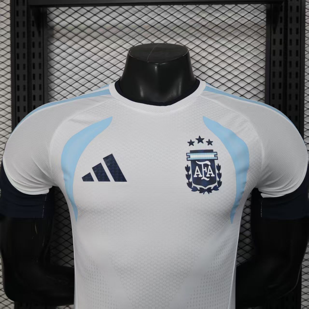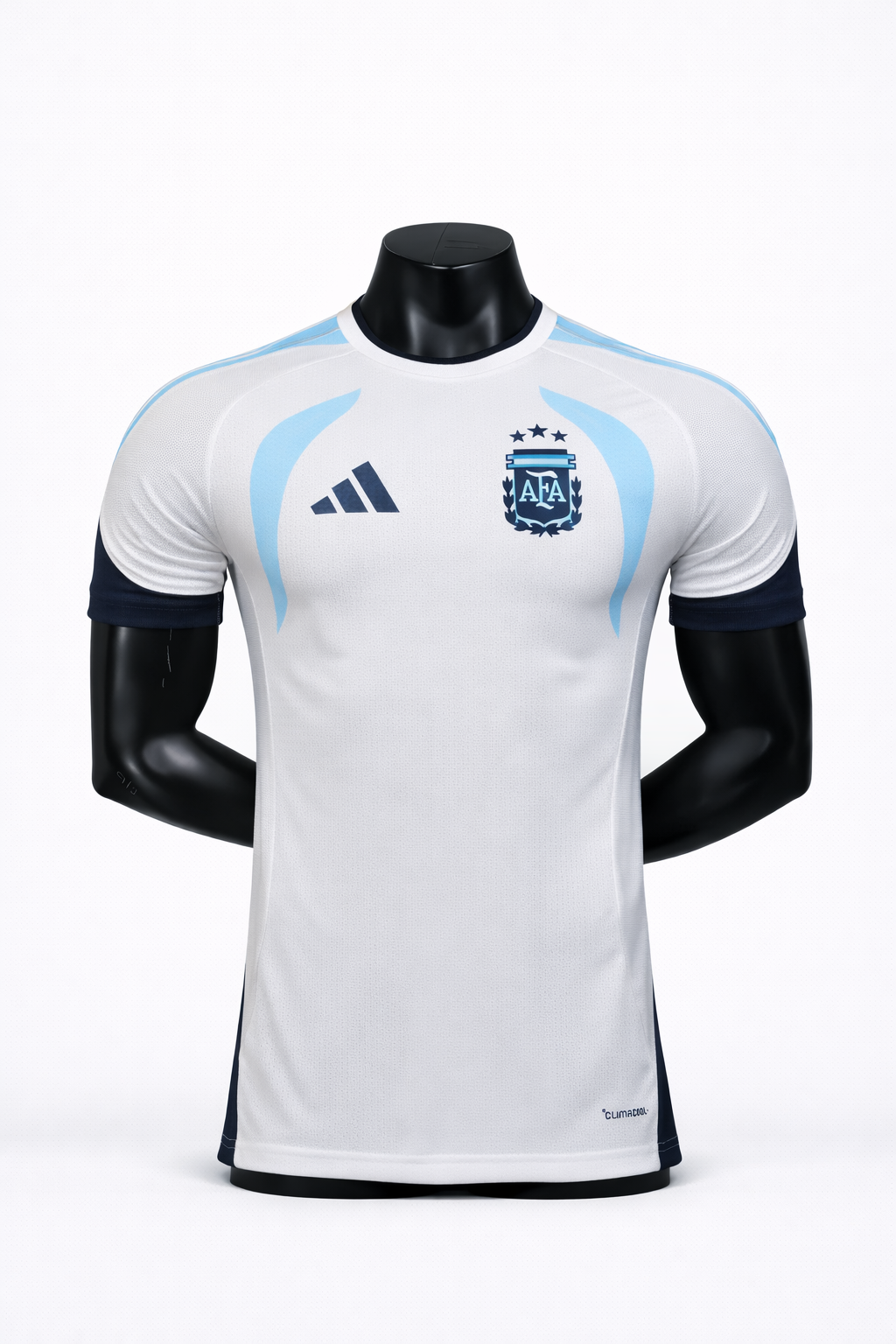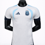 Le Maillot Argentine Blanc 25/26 – Version Extérieur se distingue par son design épuré blanc accompagné de détails bleu ciel emblématiques de l’Albiceleste.