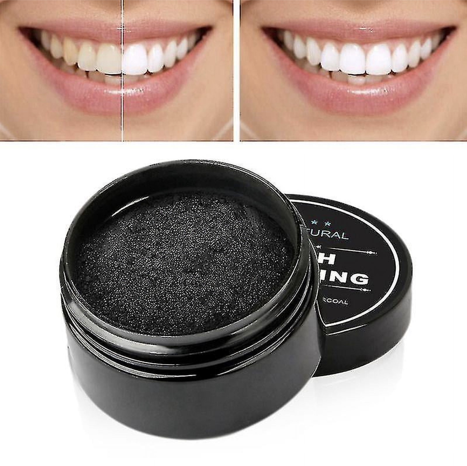 Poudre naturelle pour blanchir les dents en douceur, élimine les taches et redonne un sourire éclatant.