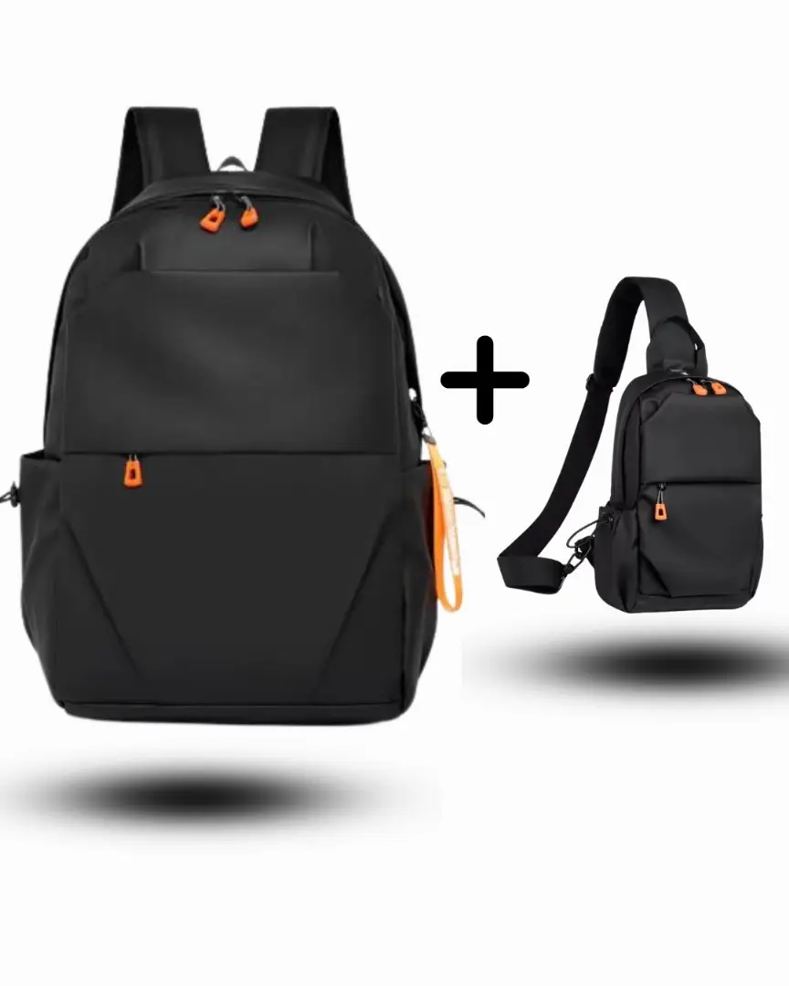 Ce set comprend un sac à dos spacieux et un sac bandoulière assorti. Le sac à dos offre un grand compartiment principal, idéal pour les cours, le travail ou les voyages. Son design sobre noir avec touches orange apporte une touche moderne et tendance. Le sac bandoulière, plus compact, est parfait pour transporter vos essentiels au quotidien (téléphone, clés, portefeuille). Ensemble pratique et polyvalent, ce duo s’adapte aussi bien aux étudiants qu’aux adultes à la recherche d’un accessoire fonctionnel et stylé.