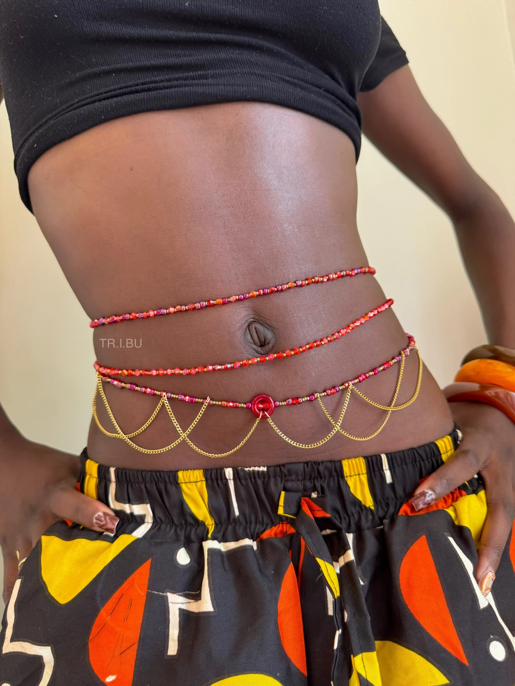 La baya BAMAKO (3 Pièces) de la marque TR.I.BU est une parure de taille vibrante et élégante inspirée de la richesse et de l’énergie des couleurs africaines. Composé de trois chaînes de perles aux nuances rouges et rosées, cet ensemble illumine la silhouette avec chaleur et caractère.