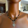 Le collier GADEZ de la marque TR.I.BU est un bijou artisanal inspiré des traditions touarègues du Niger. Symbole d’amour et de fertilité, il fait partie des célèbres croix du Niger, dont chacune représente une oasis sur la route des tribus nomades. Fabriqué à la main, ce bijou combine élégance et histoire, avec une croix traditionnelle montée sur un collier de perles noires. Chaque pièce rend hommage au savoir-faire ancestral des artisans du Sahara et incarne la force, la liberté et la spiritualité propres à la culture touarègue.
