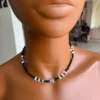 Étiquettes : accessoire artisanal, artisanal, bijou africain, bijou élégant, bijou féminin, bijou traditionnel, blanc, choker, collier, ethnique, Fait main, minimaliste, noir, perles, style touareg, TR.I.BU, tribu, unezhara, ZARIA