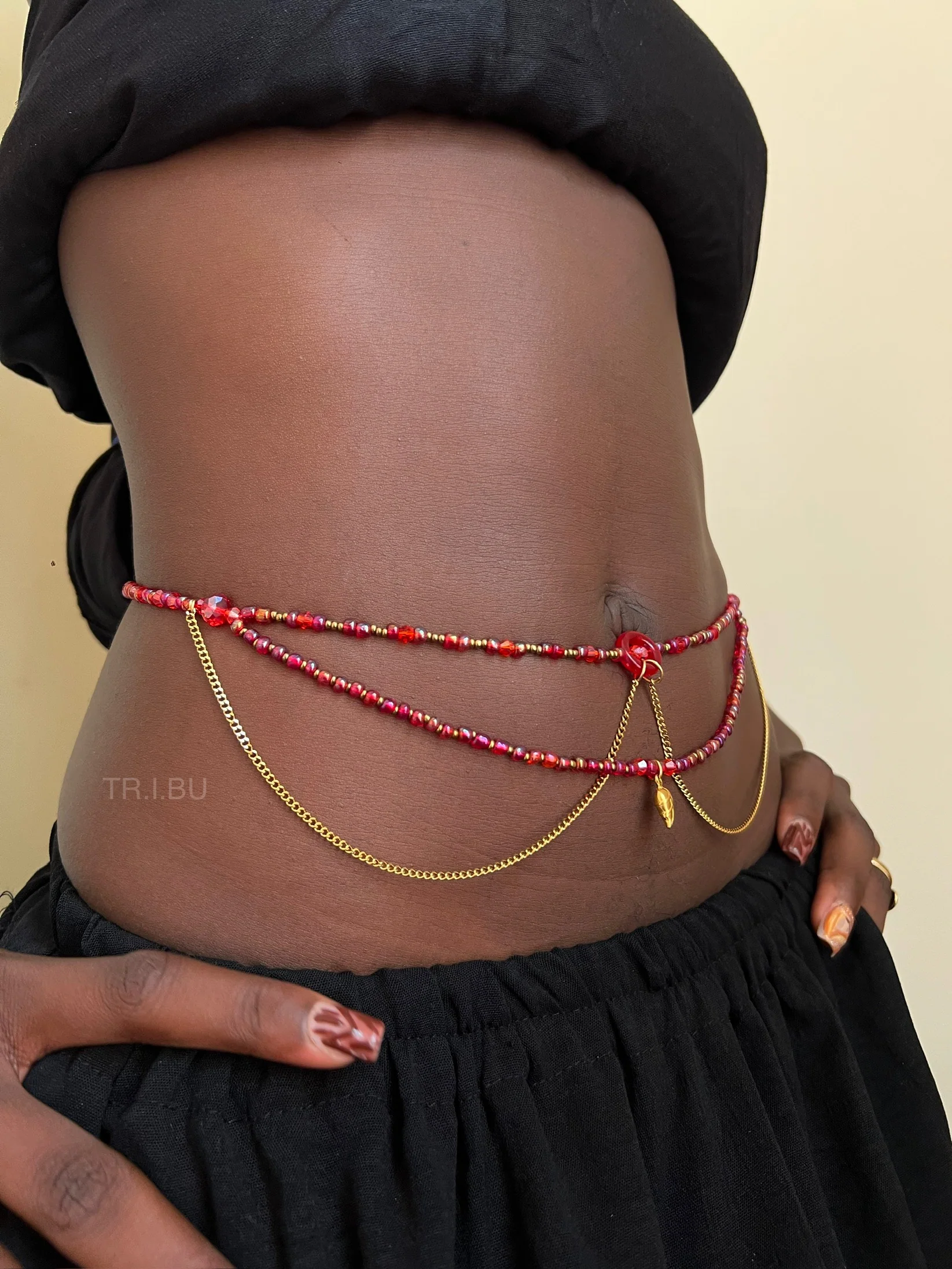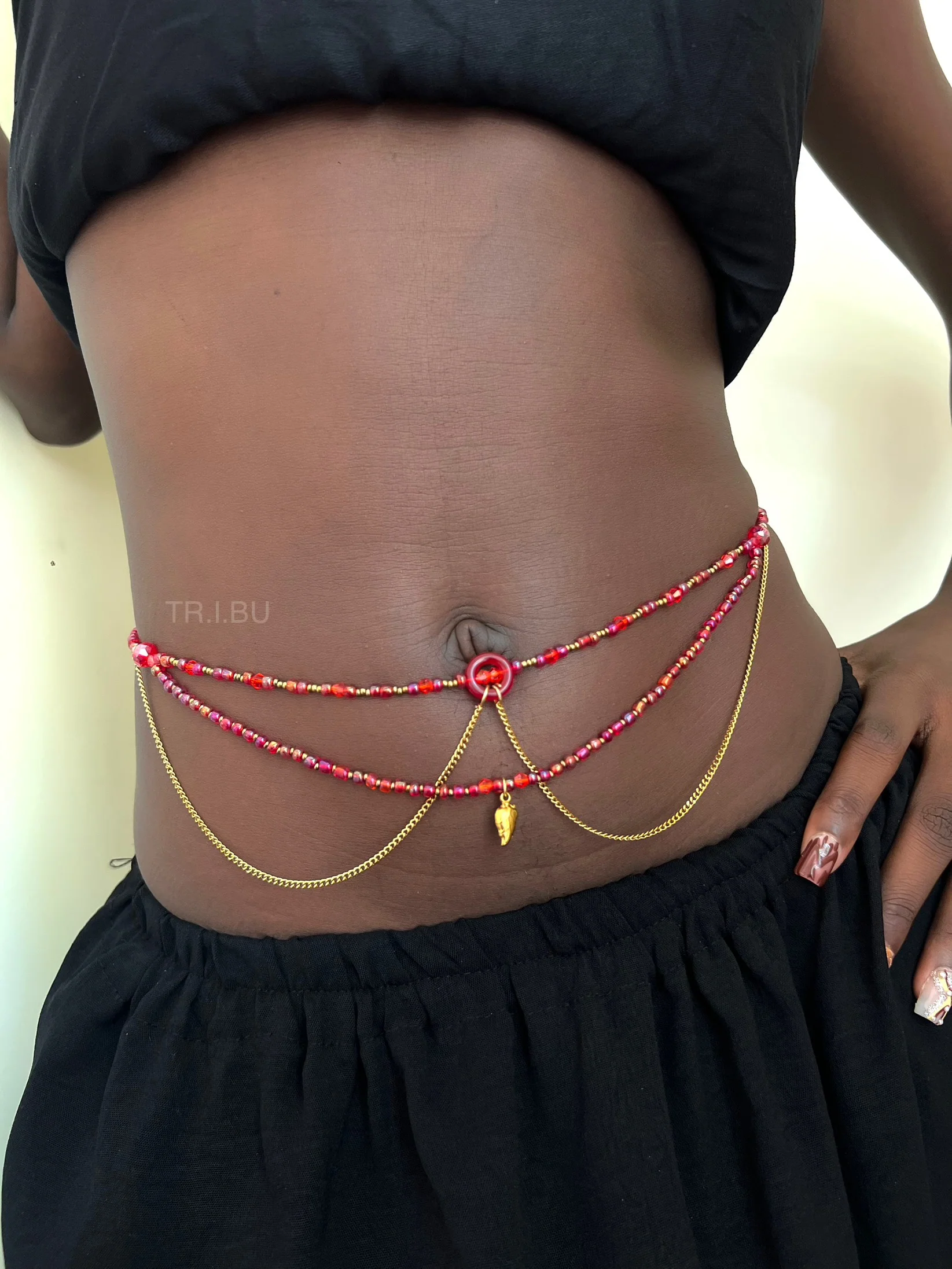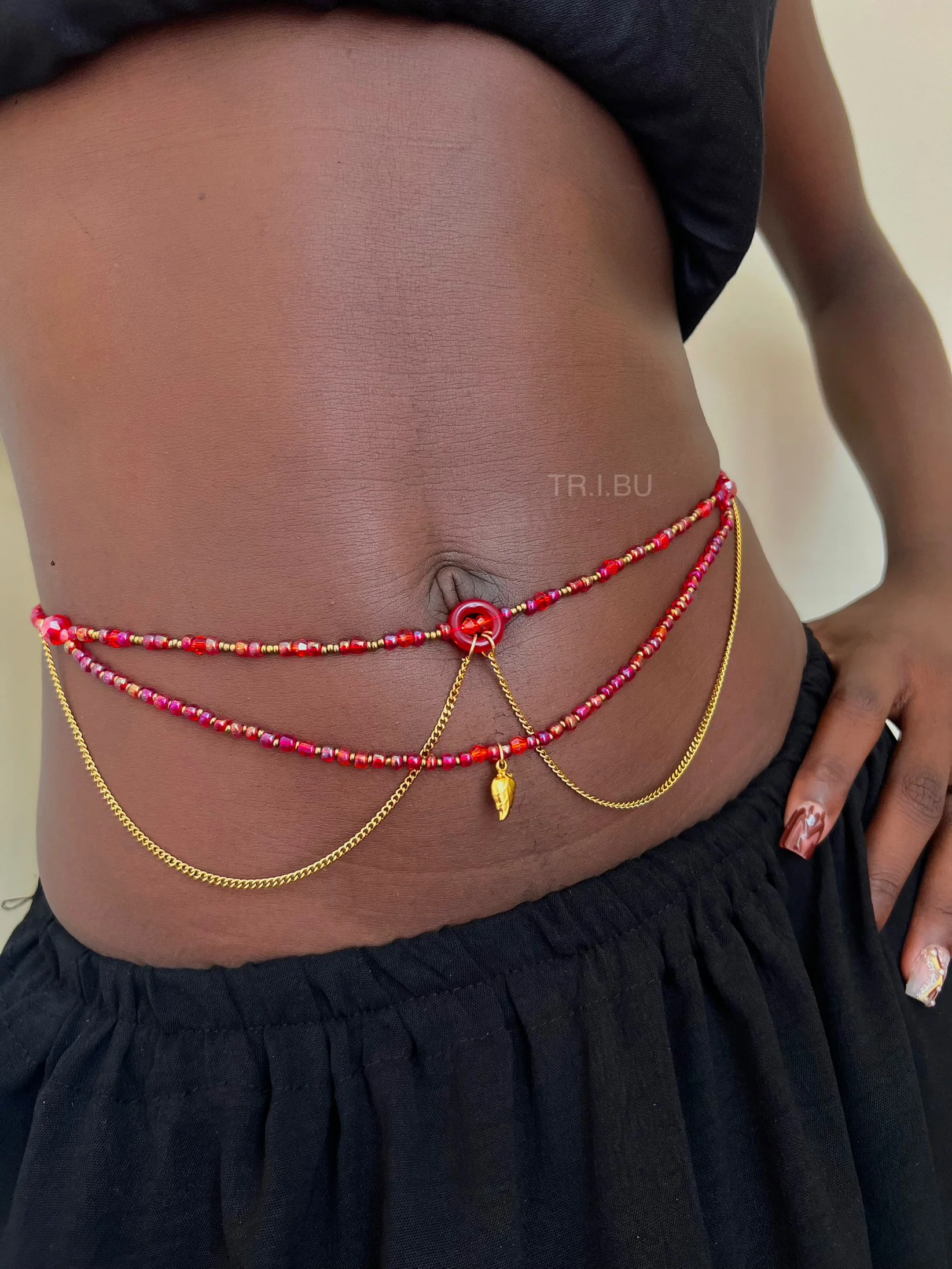 La baya KOULI (1 Pièce) de la marque TR.I.BU est un bijou de taille raffiné qui associe la profondeur du rouge à l’éclat délicat de l’or. Cette parure met en valeur la silhouette grâce à ses perles rouges intenses qui entourent la taille avec élégance.