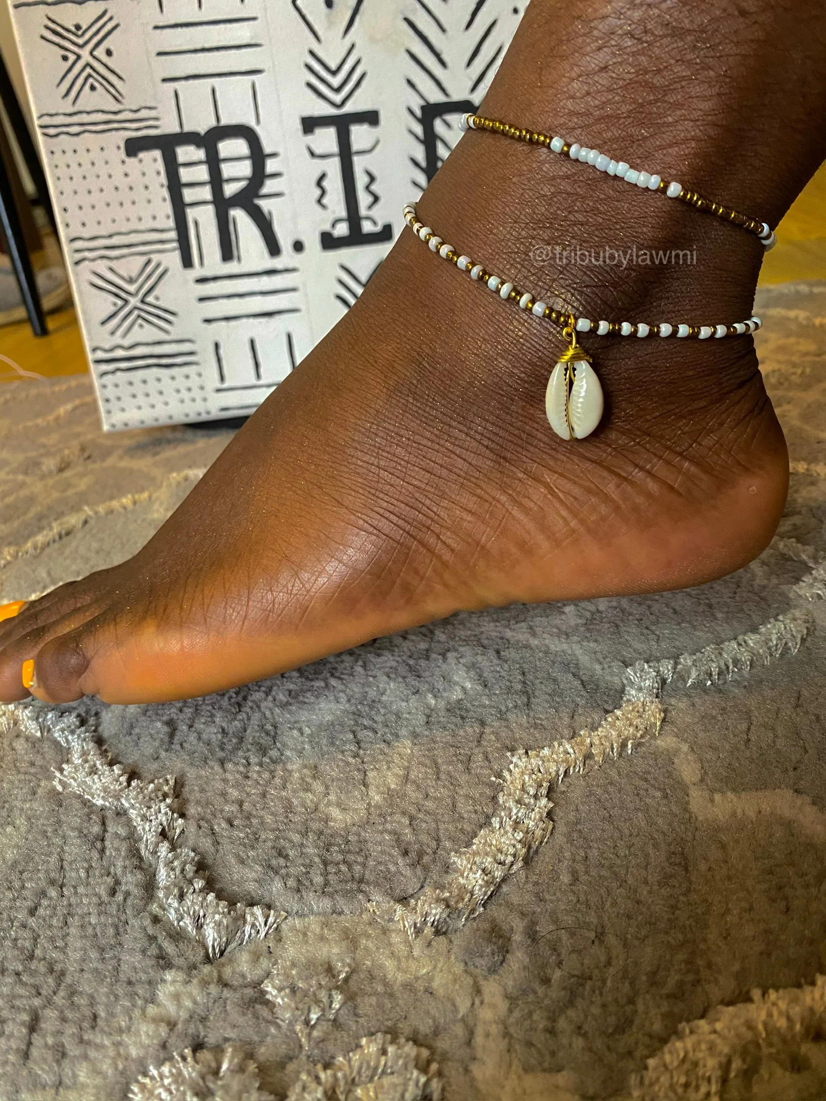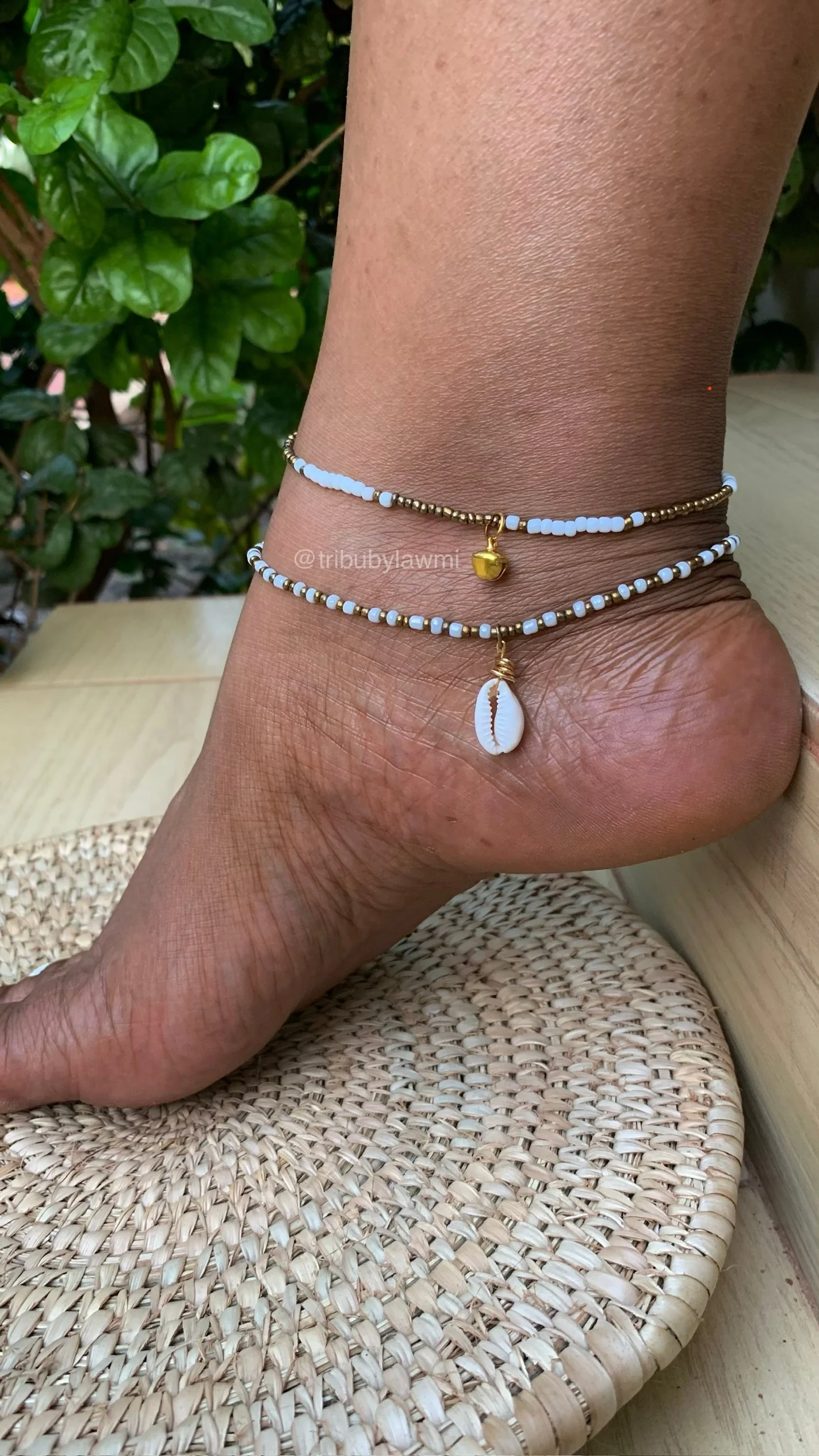 La chaîne de pied TAPA (2 Pièces) de la marque TR.I.BU est une parure élégante qui met en valeur la cheville avec délicatesse. Composé de deux chaînes fines ornées de perles blanches et dorées, cet ensemble crée un contraste lumineux et raffiné.