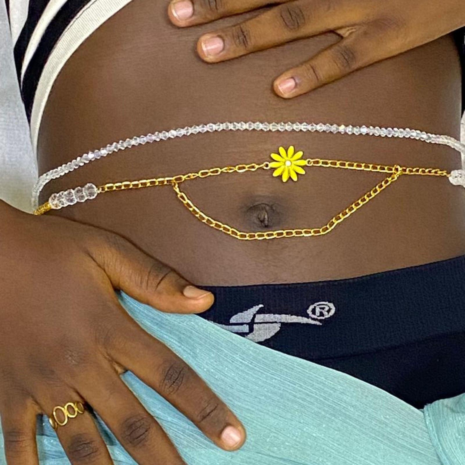 L’Ensemble Pétale de Fleur de Tuska est un bijou de hanche raffiné formé de deux brins distincts qui se complètent harmonieusement. Le premier brin est composé de perles transparentes apportant éclat et douceur, tandis que le second met en valeur un pendentif floral jaune monté sur une fine chaîne dorée. L’ensemble crée un contraste élégant entre finesse et couleur, offrant une pièce lumineuse qui attire naturellement le regard. Léger et confortable, ce baya peut être porté au quotidien ou lors d’occasions spéciales pour sublimer la silhouette avec originalité.