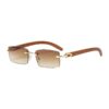 Lunettes de vue sans monture avec branches effet bois et détails dorés raffinés.